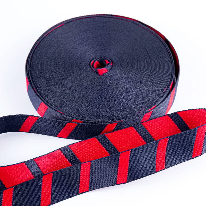 Jacquard webbing mencipta corak tiga dimensi, jelas dengan kesan visual yang kuat, meningkatkan nilai tambah produk. Jacquard webbing menampilkan corak terperinci, rasa yang licin dan ketahan warna yang sangat baik, menjadikannya tahan lama dan tahan lama.